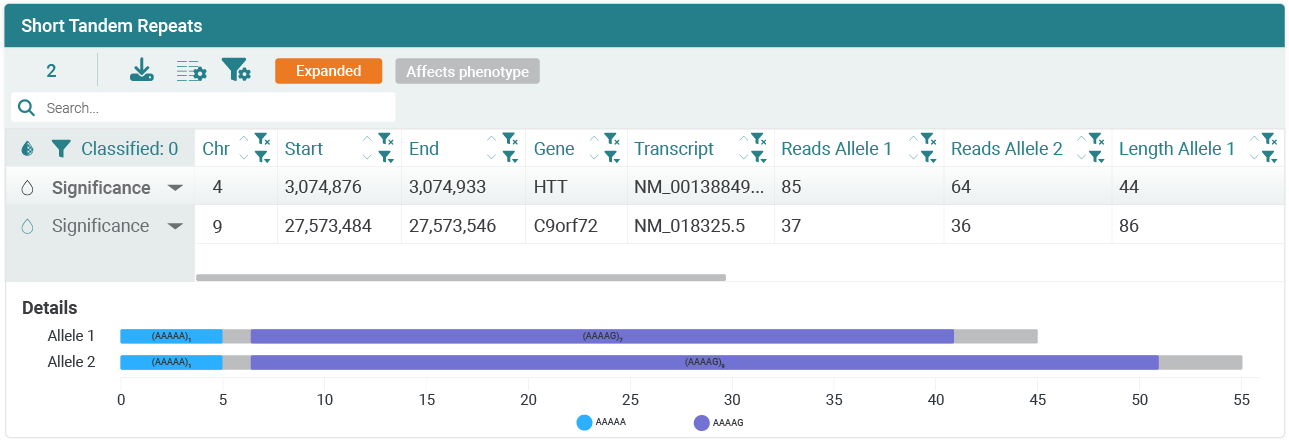 Access all essential information – from STR counts and variant annotation to phenotype association in a single, structured interface to accelerate interpretation and to support confident clinical decision-making.